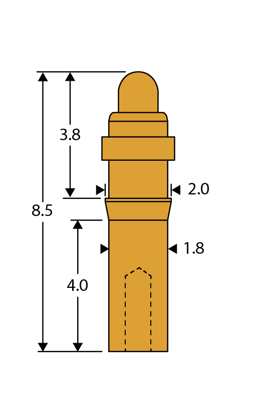 A small spring contact, similar to the PD15JS. It has a solderpot for wire connection and a barb for retention in a plastic moulding.